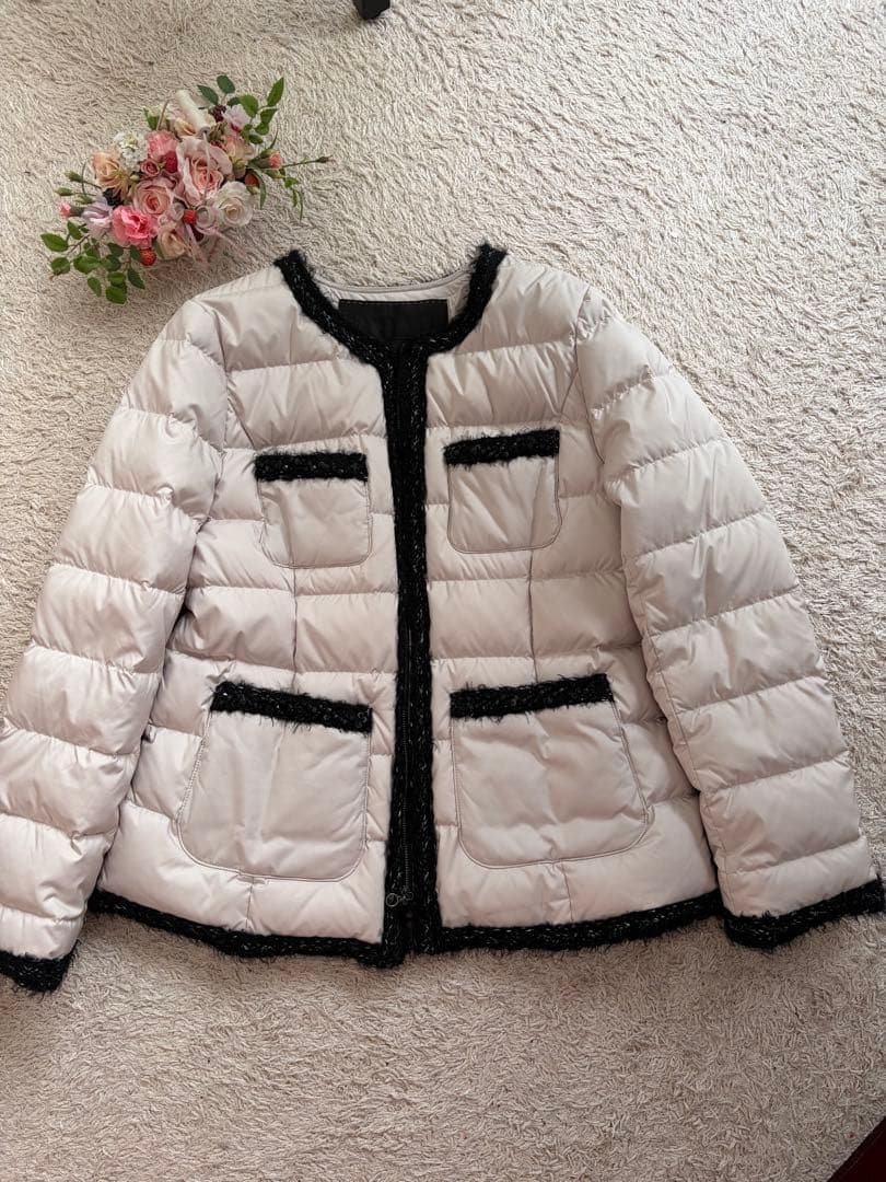 実店舗での購入。数回の着用です。軽くとても暖かいです。ショートですが、着膨れせず、ワンピースなどに合わせてもバランスが良いです。フードは外せます。出品にあたり、写真を撮っていたところ、 前ファスナー部分に、よく見ないとわからない程度ですがうっすらシミがあるのを発見しました。(写真8枚目)-カラー ホワイト-サイズ M着丈60.5 肩幅49 身幅60.5 そで丈56 重量(g)740-素材:表生地;ナイロン100% 裏生地;ポリエステル100% 中わた;ダウン90% フェザー10%配送時は折りたたんでコンパクトに発送します。ご了承くださいませ。上記、写真確認の上、神経質な方はお控えくださいませ。