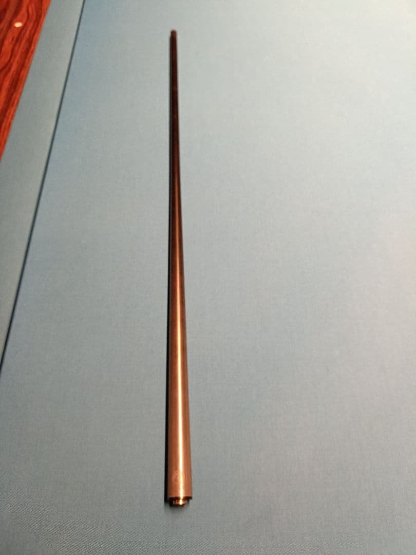 フルカーボンジャンプキューユニロック新品未使用品シャフト重さ:約115.5g長さ:約739mm(タップ含む)先角径:約13.4mm(タップではなく黒の樹脂先角部分)ジョイント径:約21.5mmタップ:ベークライトとカーボン系積層バット重さ:約161.6g(尻ゴム含む)長さ:約325mm(尻ゴム含む)重さはバランスを考えてシャフトは約115g前後でバットが約160~165g程度、合計が約280g程度になるようにしています。このジャンプキューはノーブランド品になります。仕事で中国に在住している友人を介して友人の会社の取引先である中国の色々なカーボン製品のOEMを製造している会社さんと共同で製品仕様を相談して制作してもらった商品です。最初に販売した2本は先方の会社の希望でば会社名のロゴが入っていましたがちょっと色々あったため現在はバットにGameSunの会社ロゴは入っておりません。数回の試作を繰り返し重さやバランス、テーパーなどを突き詰めたので性能は抜群です。手首のスナップを使える方なら縦キュージャンプで球1.5個空いていれば飛ばせます。もちろんフルカーボンなので暴れません。また、先角は13.4mmと太めですが先角から約200mmくらいまではほぼストレートテーパーで250mm付近から300mm付近でストロークしてもわからない程度、その後から徐々に太くなるテーパーとなっておりますのでブレイクシャフトにも最適で振りやすいテーパーとなっております。Predatorのユニロックに互換性がありますのでこのシャフト一本あればこと足ります。パワーはPredatorのREVO12.9に近くトビはキューテックのシナジーより若干大きい感じです。最近流行りのヒーリングがコスパが良いと思っていましたが、どうしてもシャフトが軽すぎてバットが重すぎるのでロングは飛ばしやすいですがショートが飛ばし辛くバランスが悪かったのであえてエクステが無いバランス重視の物を造ってもらいました。私感ですが有名メーカーさんの高価なジャンプキューを買う必要はありません。現在までに発売している物はほとんど使用しましたがこのキューのほうが優れていると思います。ジャンプキューが欲しい、ブレイクシャフトも欲しい方はお勧めです。ご購入前に私のコメントの文章も必ずお読み下さい。